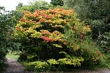There is a fine example of the very beautiful Acer shirasawanum ‘Aureum’ the Golden Acer at the gate as you enter the garden which is one of the first Japanese maples to change into autumn colour but drops its leaves as soon as there is a frost. Many other Acers particularly those close to the house and on the lawn will begin to colour early in the month. Throughout the garden the beautiful red bark of Prunus serrula tibetica Tibetan Cherry is unmistakable. The pale green leaves of the Aralia chinensis or Devil’s Walking Stick are some of the first to change to bright yellow and orange and very strangely, once the leaves drop, the plant flowers at the top of the stick. Large clumps of Aralia can be seen around the edges of the lawn. Enkianthus and Euonymus are two groups of shrubs with striking red, orange or yellow leaves as autumn progresses. Particularly interesting are the different types of ‘lantern’ seed heads found on all the species of Euonymus (Spindle). As they ripen, they open to reveal colourful seeds surprisingly much-loved food for Robins. You may well smell a lovely sweet aroma around number 11 where to the left is a very large and wide Cercidiphyllum japonicum the Katsura Tree (from China & Japan). It’s ovate to rounded leaves turn orange and yellow in autumn. In Germany this tree is aptly named THE PUDDING TREE due to the fallen leaves smelling of burnt sugar or even popcorn! There are other examples of this tree species in the garden. You may not see them but you may catch their scent. Autumn in the garden has an aroma all of its own.